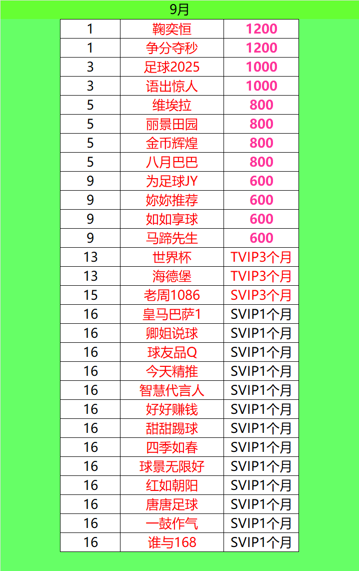 全月汇总:
